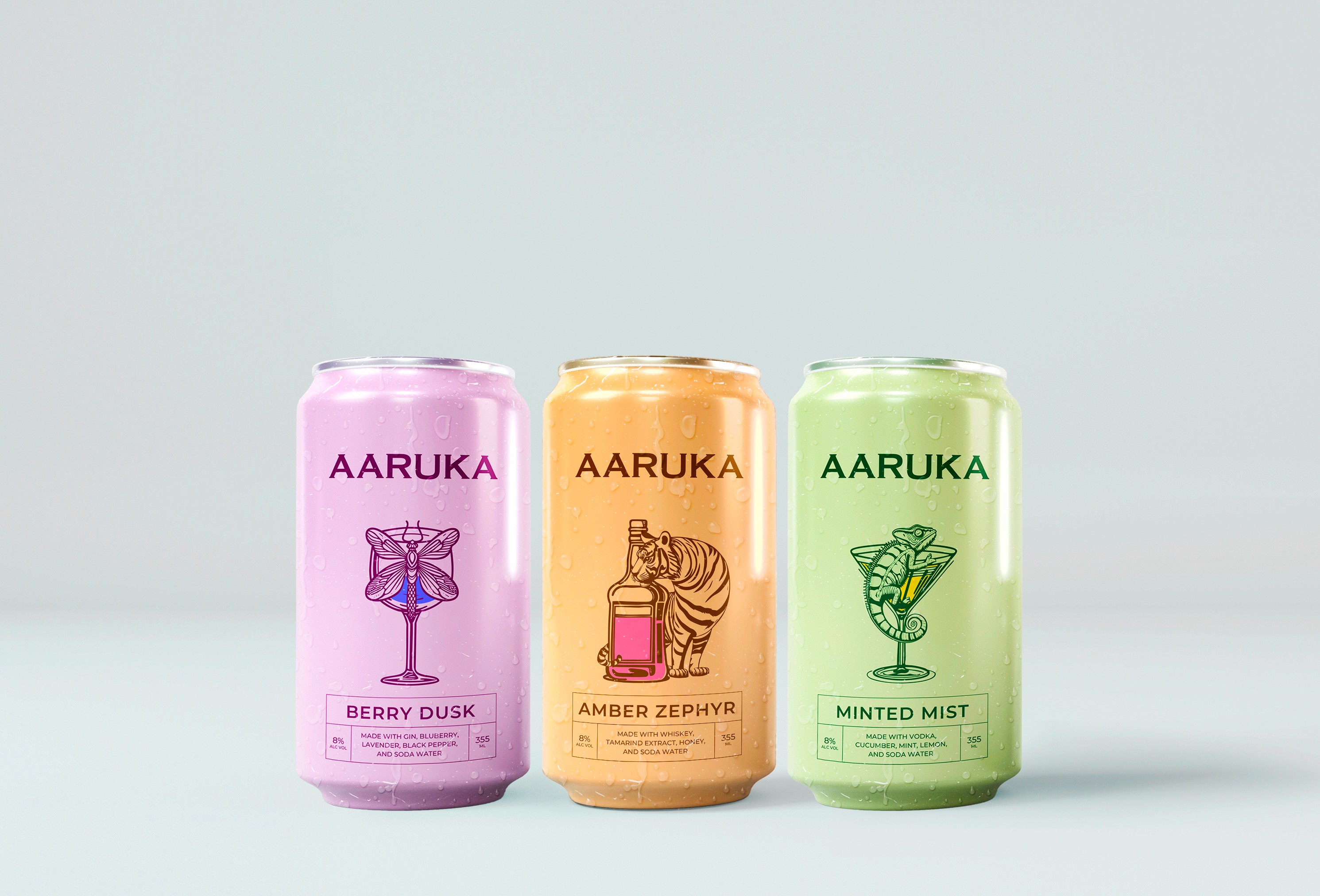 Step into the world of AARUKA, where cocktails in a can are more than just drinks - they're bold experiences waiting to be discovered. AARUKA, meaning "the rise of something new and bold," introduces an exciting twist to mixology, blending extraordinary flavours with imaginative storytelling. Each can is a canvas, featuring illustrations that embody the soul of the cocktail, making every sip a flavourful journey.