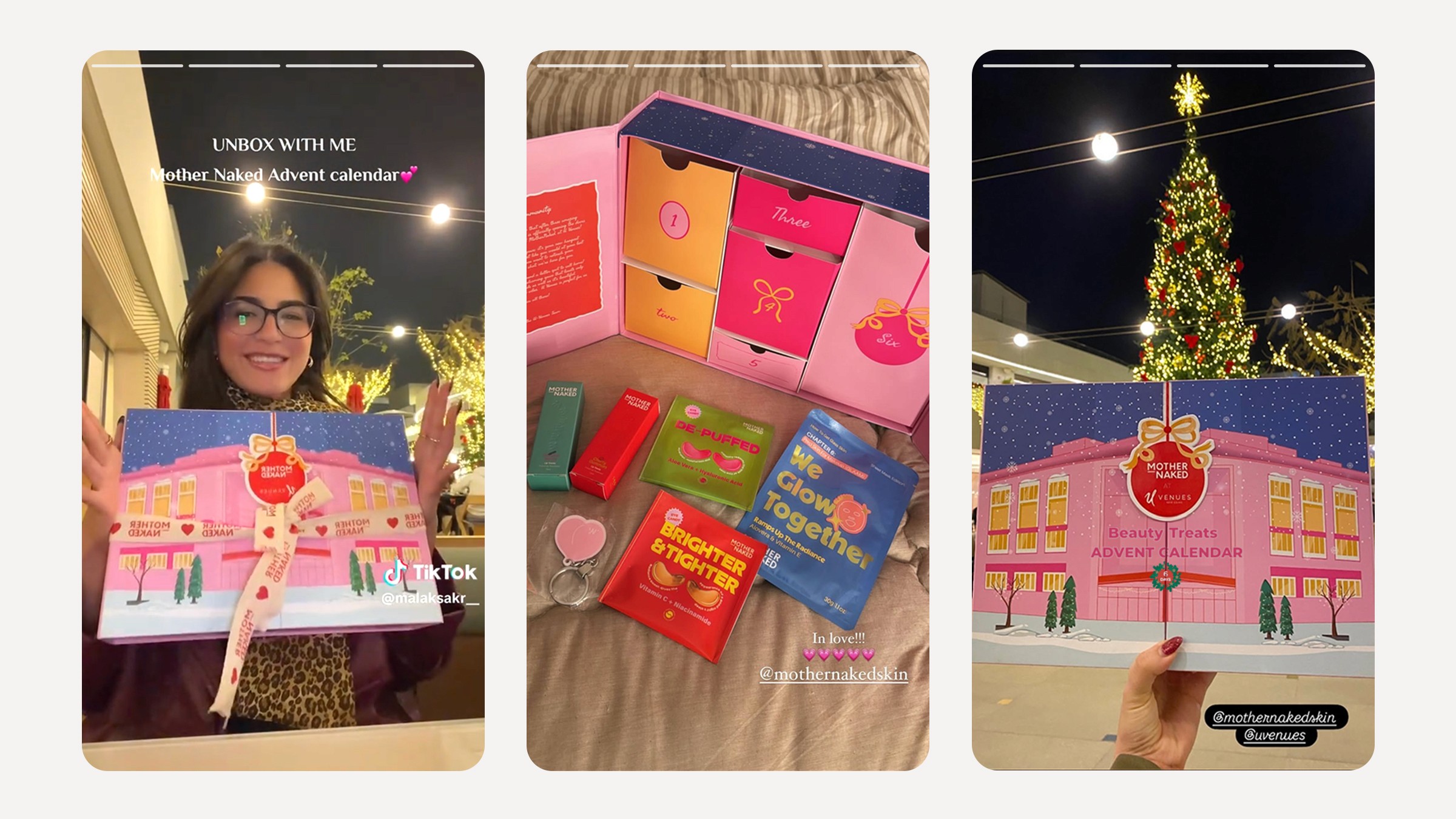 The goal was to craft a packaging design that captured the holiday spirit while maintaining the luxurious and bold aesthetic of Mother Naked. The biggest challenge was balancing UVenues’ elegance with Mother Naked’s striking identity, ensuring the design felt both sophisticated and inviting. With just 7 days to bring it to life, the project required quick thinking, seamless execution, and a sharp eye for detail - from concept to final packaging.